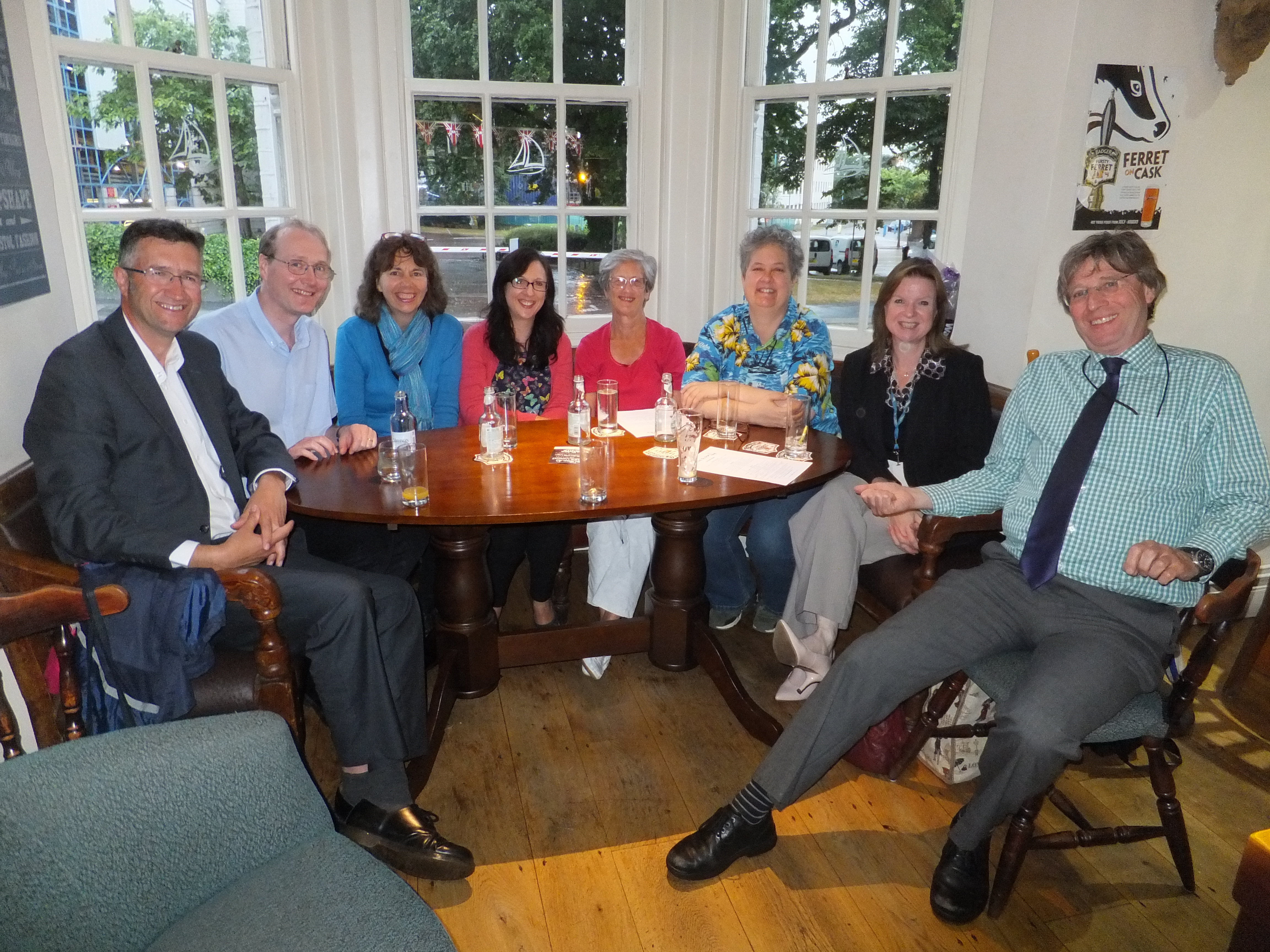 Happy Faces! Happy Faces all round as our Trustees and Recycling Ambassadors got together at the Sloop in Poole on Monday 1 August. (l-r: Shaun, Chris, Monique, Sarah, Barbara, Laura, Jo and Nick)